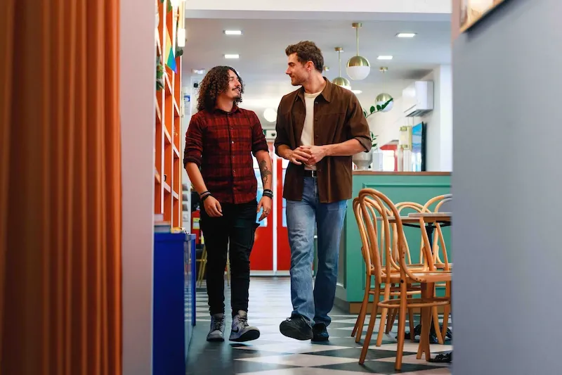 Nawiąż kontakt z innymi studentami w przytulnej strefie wypoczynkowej Expanish. Zaledwie trzy przecznice od parku Retiro, najlepszej dzielnicy Madrytu.
